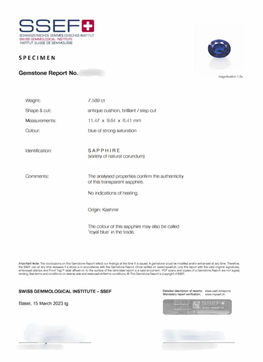 Dieses Zertifikat ist ein unverzichtbares Dokument für jeden Edelsteinbesitzer. Es sichert nicht nur die Investition ab, sondern unterstützt auch bei Verkaufs- und Versicherungsangelegenheiten. Ein SSEF-Zertifikat bietet detaillierte Informationen über die Herkunft, die Qualität und die Eigenschaften des Edelsteins und stellt sicher, dass Sie einen Edelstein von höchster Authentizität und Wert erhalten.